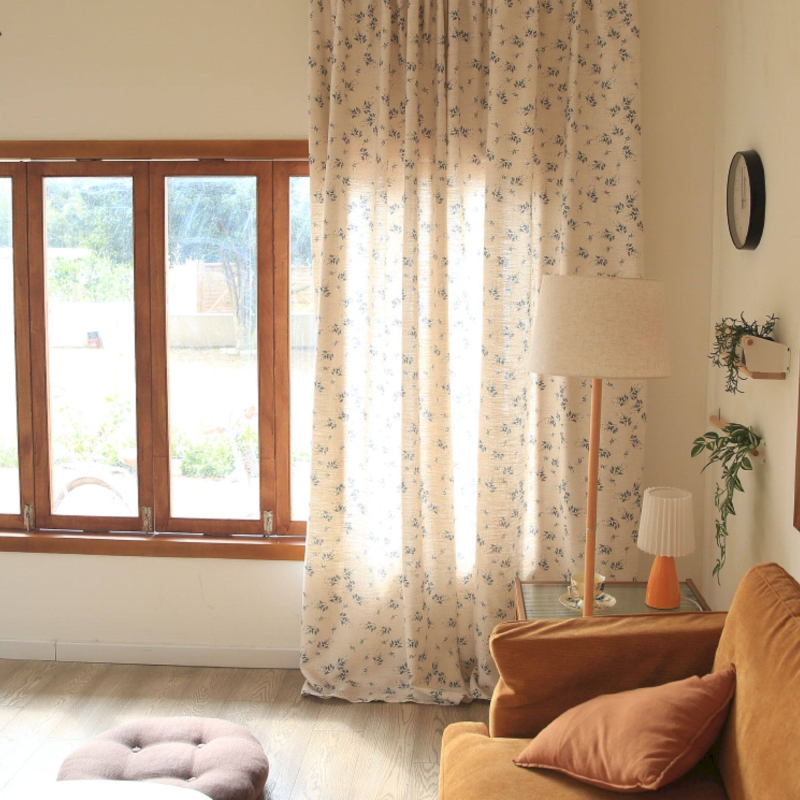 Tenda su misura EMIL, in tessuto misto lino stampato, con piccoli fiori selvatici sparsi