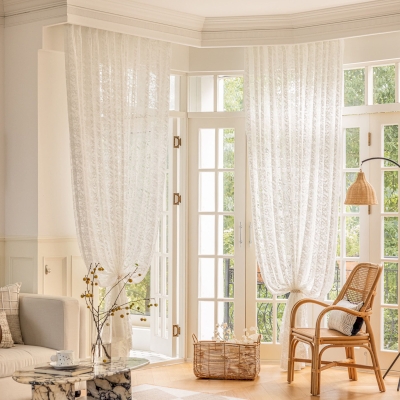 In questa splendida stagione estiva, per creare un'atmosfera calda e confortevole nella vostra casa, non c'è niente di meglio di una tenda che si mimetizzi con la natura.La tenda in voile Victoria bianca, pregiata ed elegante, è realizzata in un tessuto in fibra di cashmere super morbido e confortevole, che ti permetterà di avvolgerti in un'atmosfera accogliente. I motivi traforati a forma di foglie mettono in risalto la bellezza naturale di questa tenda trasparente, donando un tocco di freschezza e naturalezza al vostro arredamento.Inoltre, questo velo ha anche una funzione riflettente e filtrante della luce, creando un'atmosfera soffusa e piacevole.La tenda trasparente Victoria è la scelta perfetta per chi desidera creare uno spazio abitativo elegante e accogliente, rimanendo comunque in armonia con la natura.- Larghezza utile: 270 cm