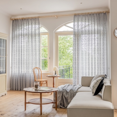 Porta freschezza e natura nella tua casa con la nostra tenda in voile Elodie. Realizzata con un delicato pizzo, questa tenda in voile grigio è decorata con motivi floreali e fogliari, creando un'atmosfera morbida e naturale.